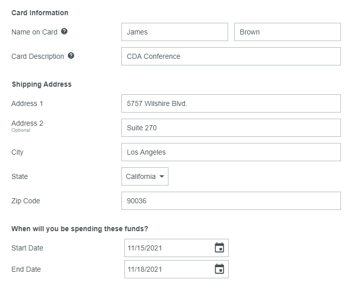 - Card Description: Give the card a nickname to distinguish it from any other Emburse Cards you may have.